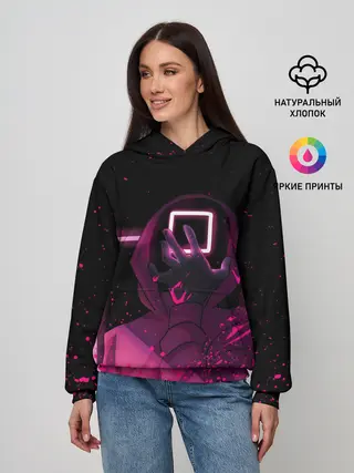 Женское худи / ИГРА В КАЛЬМАРА НЕОН, СТРАЖ КВАДРАТ 029