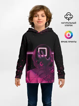 Детское худи / ИГРА В КАЛЬМАРА НЕОН, СТРАЖ КВАДРАТ 029