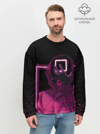 Мужской свитшот базовый / ИГРА В КАЛЬМАРА НЕОН, СТРАЖ КВАДРАТ 029