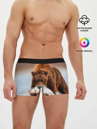 Мужские трусы боксеры / Медведь с рыбой во рту
