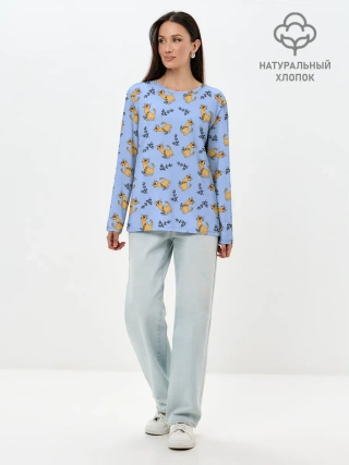 Лонгслив женский. Хлопок / Радостный кот