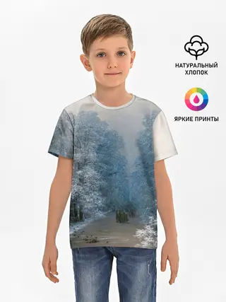 Детская базовая футболка / Зимний пейзаж картина маслом