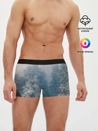 Мужские трусы боксеры / Зимний пейзаж картина маслом