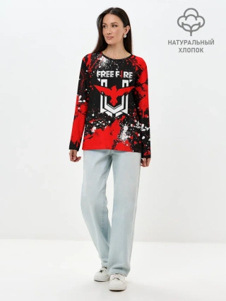 Лонгслив женский. Хлопок / Free Fire: Брызги и капли красок.