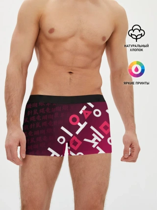 Мужские трусы боксеры / ИГРА В КАЛЬМАРА, ИЕРОГЛИФЫ ЛОГО