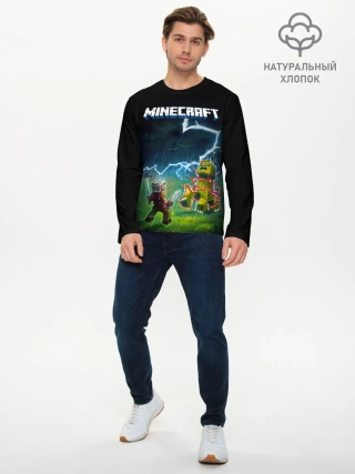 Мужской лонгслив базовый / Бой Стива с Крипером под ударом молнии