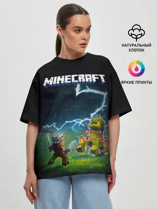 Женская футболка оверсайз / Бой Стива с Крипером под ударом молнии