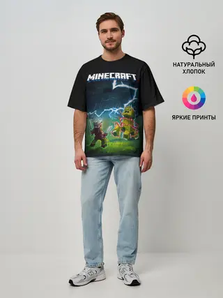 Мужская футболка оверсайз / Бой Стива с Крипером под ударом молнии