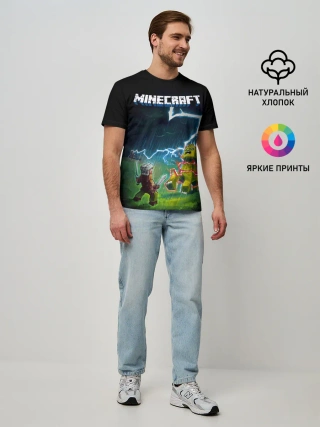 Мужская базовая футболка / Бой Стива с Крипером под ударом молнии