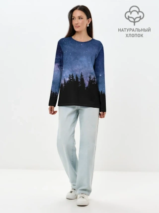 Лонгслив женский. Хлопок / НОЧНОЙ ЛЕС И ЗВЕЗДЫ