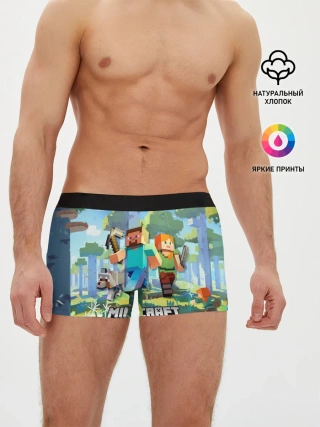 Мужские трусы боксеры / Манйкрафт, березовый лес