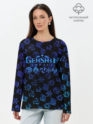 Лонгслив женский. Хлопок / Genshin Impact | NEON PATTERN SYMBOL
