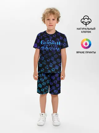 Детская пижама с шортами / Genshin Impact | NEON PATTERN SYMBOL
