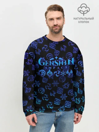 Мужской свитшот базовый / Genshin Impact | NEON PATTERN SYMBOL