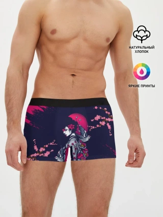 Мужские трусы боксеры / ДЕВУШКА В КИМОНО И ПТИЦАМИ