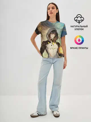 Женская базовая футболка / Чжун Ли, Zhongli, Genshin Impact
