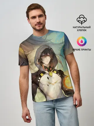 Мужская футболка оверсайз / Чжун Ли, Zhongli, Genshin Impact