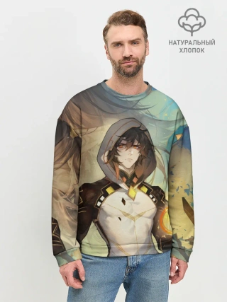 Мужской свитшот базовый / Чжун Ли, Zhongli, Genshin Impact