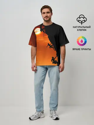 Мужская футболка оверсайз / СКАЛОЛАЗЫ В ЗАКАТЕ