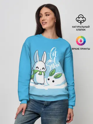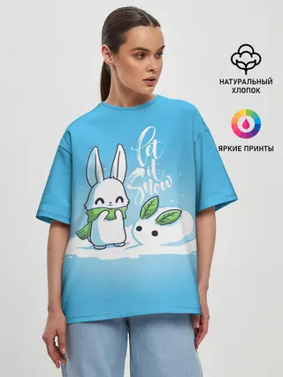 Женская футболка оверсайз / Let it snow. Зайчик и снежок