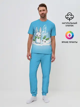 Мужская пижама с брюками / Let it snow. Зайчик и снежок