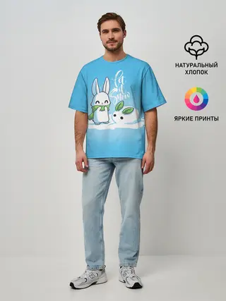 Мужская футболка оверсайз / Let it snow. Зайчик и снежок