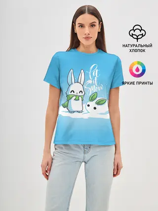 Женская базовая футболка / Let it snow. Зайчик и снежок