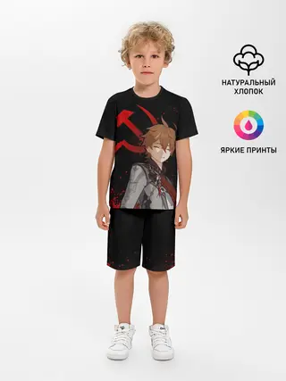 Детская пижама с шортами / ТАРТАЛЬЯ | СНЕЖНАЯ | ЧЕРНЫЙ