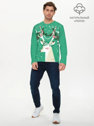 Мужской лонгслив базовый / Олень. Новый год