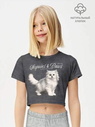 Футболка для девочки укороченная базовая хлопок / Котёнок new look