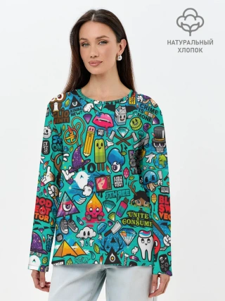 Лонгслив женский. Хлопок / стикербомбинг