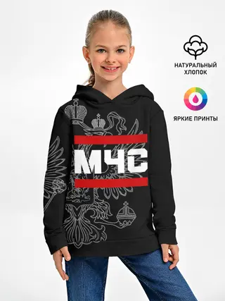 Детское худи / МЧС белый герб РФ