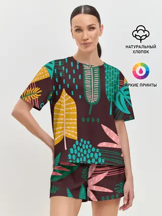 Женская футболка оверсайз / ЛИСТЬЯ 2.0