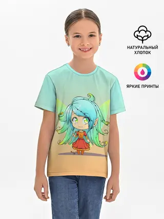 Женская футболка оверсайз / малышка чиби и цыпленок