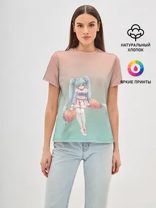 Женская футболка оверсайз / Чирлидерша с помпонами