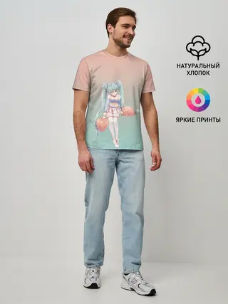 Мужская футболка оверсайз / Чирлидерша с помпонами