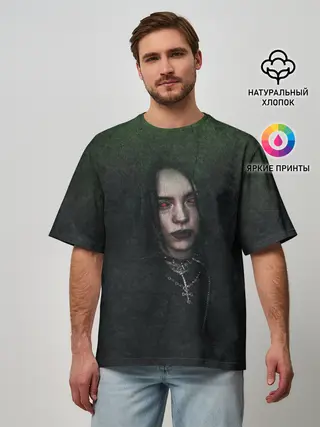 Мужская футболка оверсайз / Билли Айлиш демонический стиль