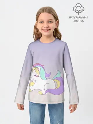 Лонгслив женский. Хлопок / единорожек на фиолетовом