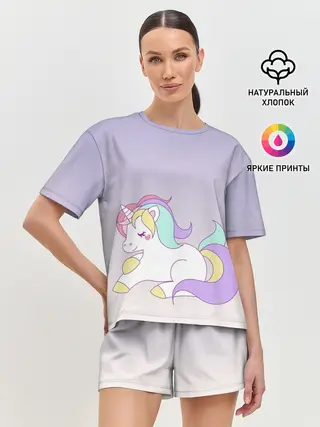 Мужская футболка оверсайз / единорожек на фиолетовом