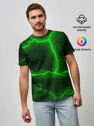 Мужская базовая футболка / К - 13 зелёная трещина 3D