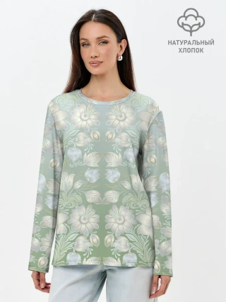 Лонгслив женский. Хлопок / цветочный узор