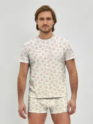 Мужские трусы с футболкой / узор мелкие цветочки