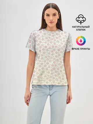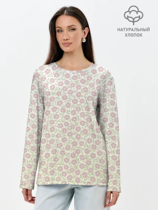 Лонгслив женский. Хлопок / узор мелкие цветочки