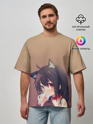 Мужская футболка оверсайз / девочка ушки кофе