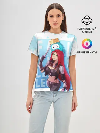 Лонгслив женский. Хлопок / Fall guys x league of legands