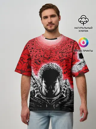 Женская футболка оверсайз / Берсерк иероглифы паттерн