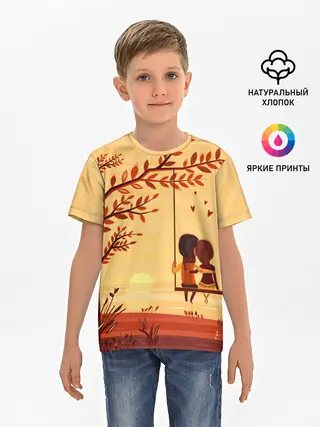 Мужская футболка оверсайз / Романтика. Пара на качелях