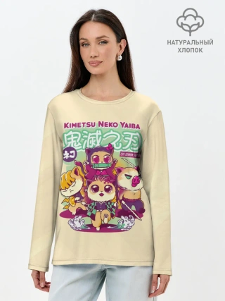 Лонгслив женский. Хлопок / Kimetsu Neko Yaiba