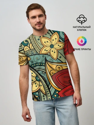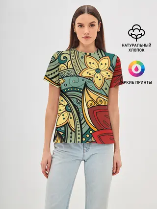 Женская футболка оверсайз / ЦВЕТОЧНЫЙ ОРНАМЕНТ