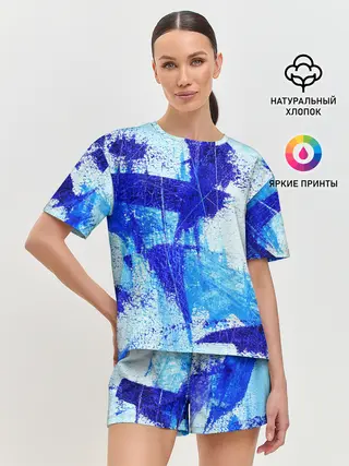 Женская футболка оверсайз / БРЫЗГИ-КРАСОК НЕОН